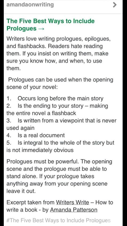 A writer should write what they want to write, and write it how they want to write it. Readers do not want carbon copy books which are exactly like any other book they have read. They should write for an audience sure, but primarily they should make that audience themselves first. They should also bear in mind the most important rule, one which ‘self -help’ books seldom focus upon. Readers like what adds to the story. The story you want to tell is what should drive your novel and a good prologue or epilogue or flashback can do just that. If it sets up something, holds the reader’s interest, and just plain adds to your tale.