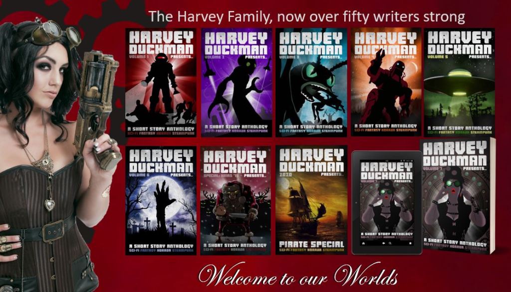 With its latest release the Harvey Duckman series has reached a landmark of over fifty new and established indie writers spread across nine books, with more to come. It is a project I was lucky enough to be involved in from the very beginning, in a writers meet up in a pub one summer evening back in 2018 when the idea of putting together an anthology of new scifi, horror, fantasy and steampunk stories was first touted.