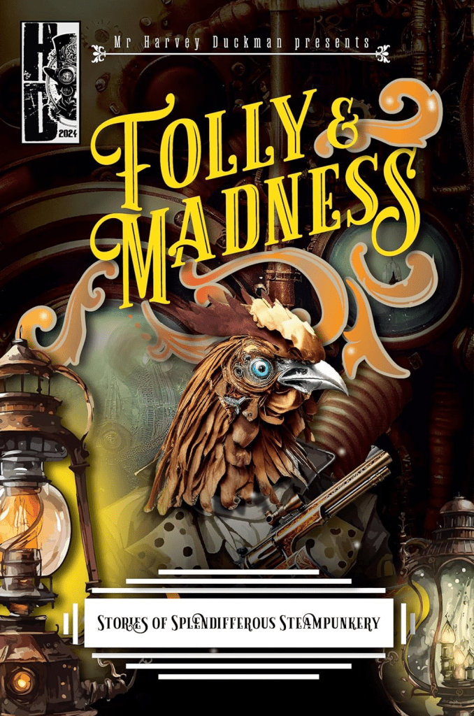 The first of these new Harvey’s is being released on the 5th of July, entitled ‘Folly and Madness’ is is a steampunk anthology that has been long in the making. I first broached the subject of Harvey doing a all steampunk anthology over a year ago. For me this particular book has had even more personal involvement as in Harvey terms ‘steampunk*’ is my thing.