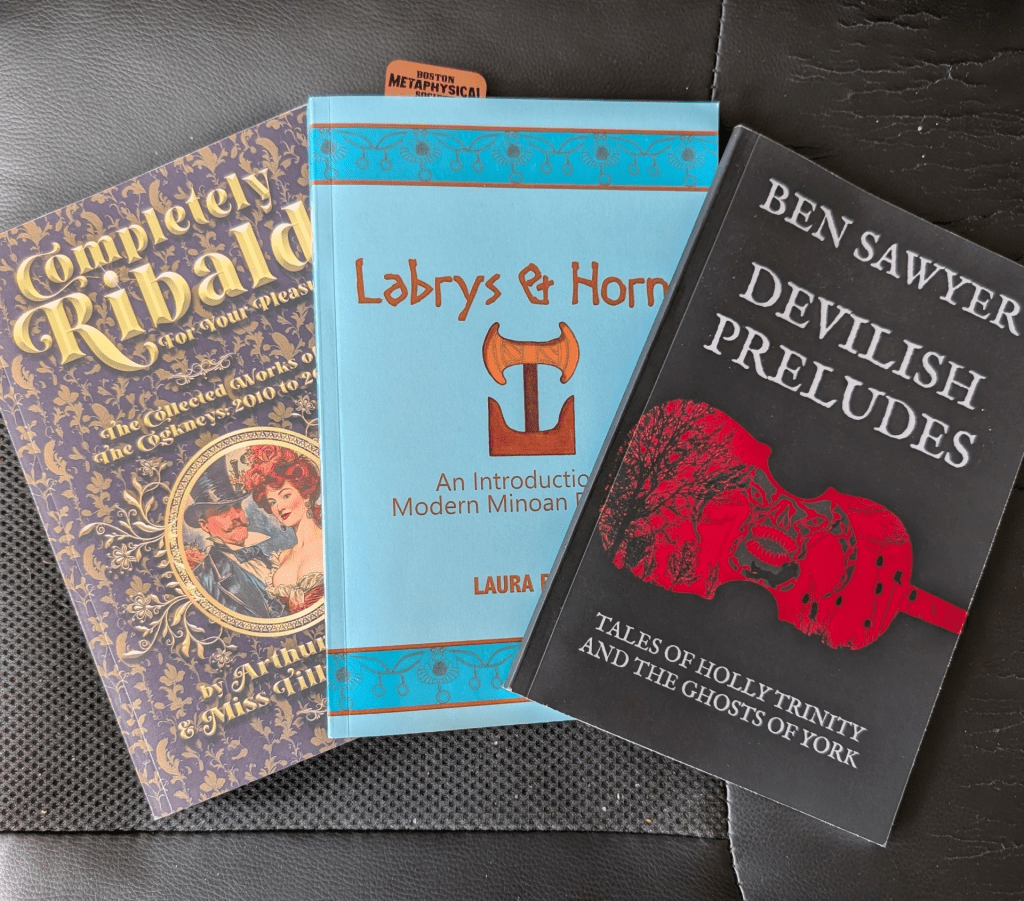 A Final Final note: For various reason I have not completely finished (or at least finished with) all three of these books, not entirely, The Cockney’s because its a coffee table book, and I have lost my coffee table, so it is sat on my desk. I delve into it now and again when I want a smile. Laura’s because in parts it’s a refence book on practical paganism and you never finish a book like that, you return to it constantly, and Bens because I need to finish Monsters at the gate first.